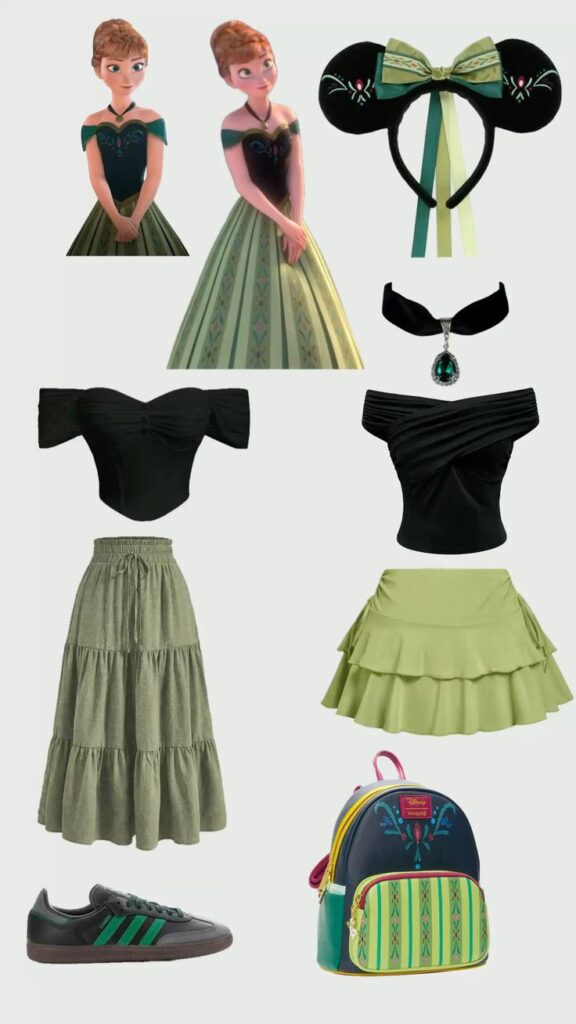 Aunque no sigo el Disneybound de manera estricta, sí hay planificación detrás de cada outfit que uso en mis viajes. La diferencia está en el punto de partida: no elijo un personaje específico para recrear, sino una paleta de colores que me remita a ese universo.